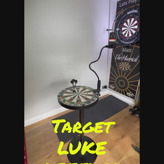 Crafted from a new Target Dartboard, this table features a perspex cover and an adjustable base. Perfect for mounting a camera arm for DartsCounter or simply a place to put your darts and a pint!